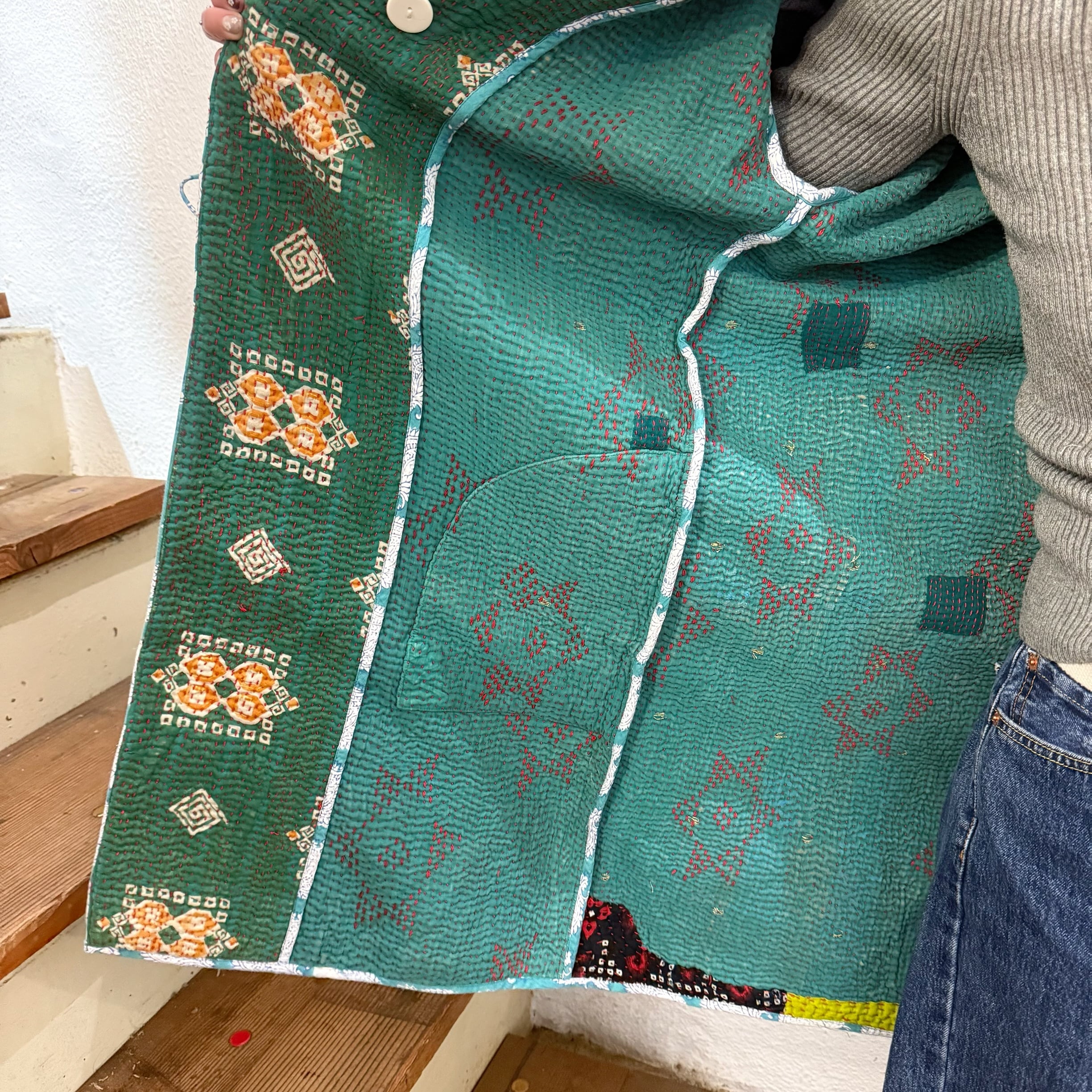 インドの刺し子布を薄利用したオリジナル製品です。