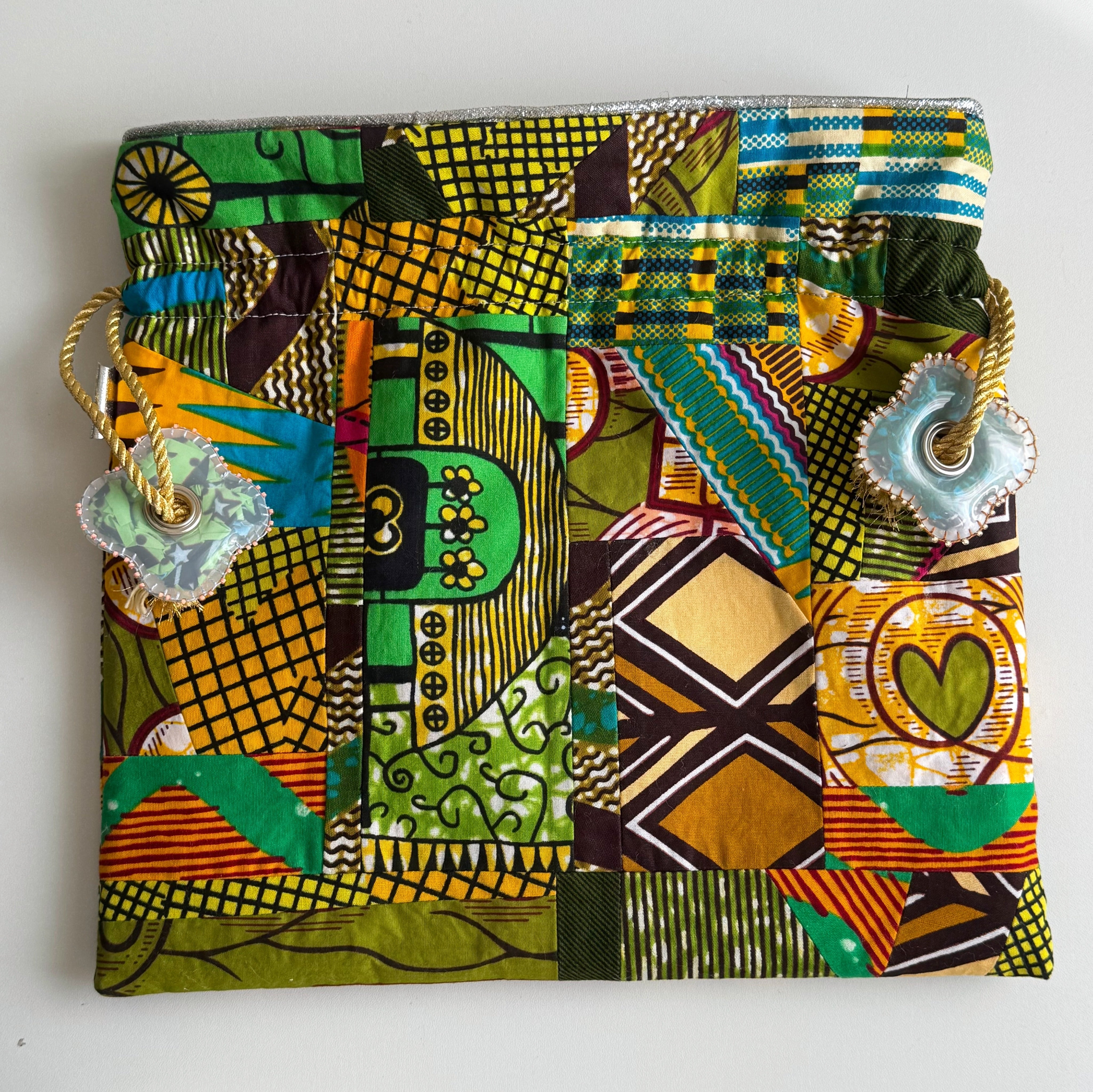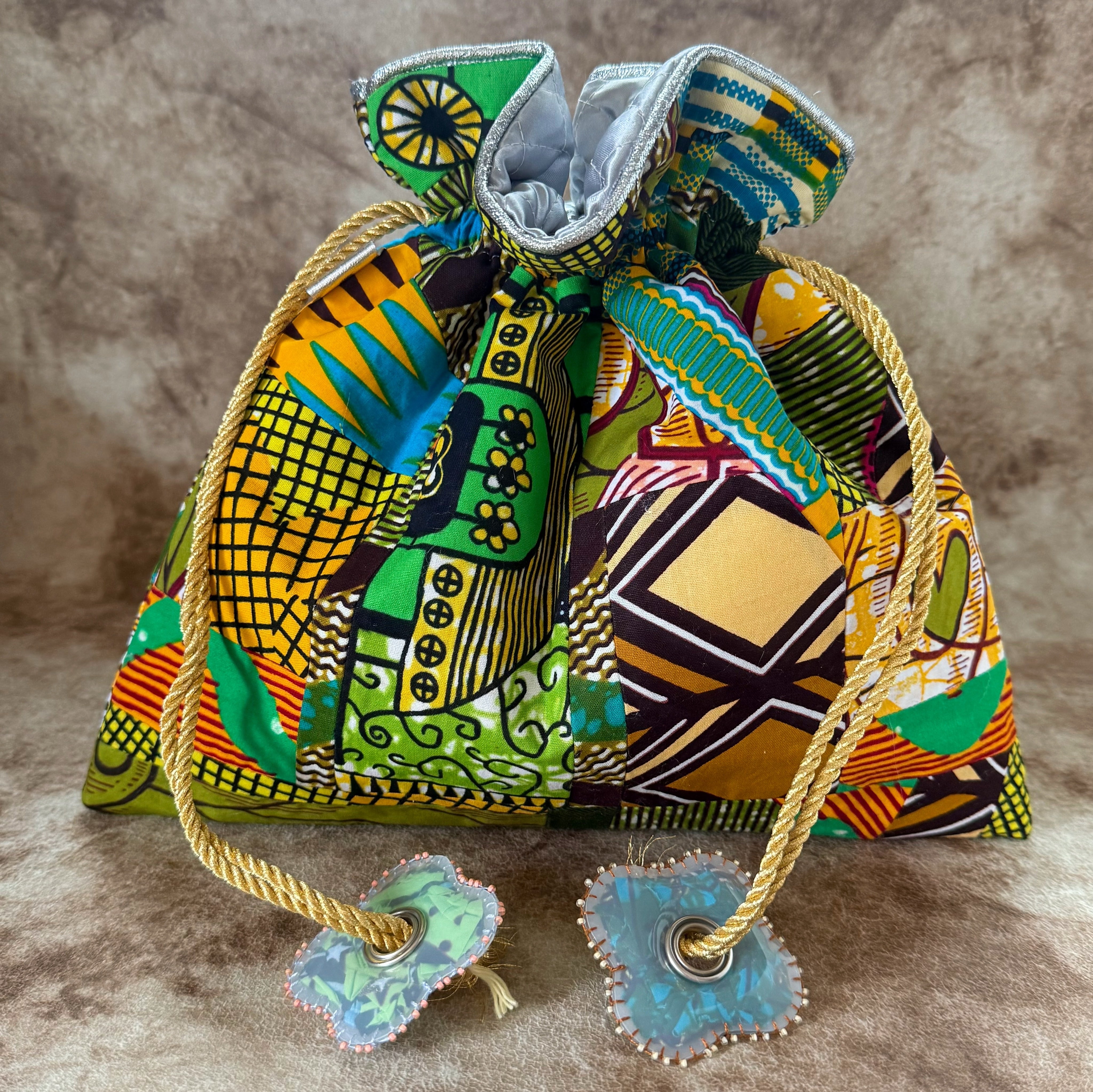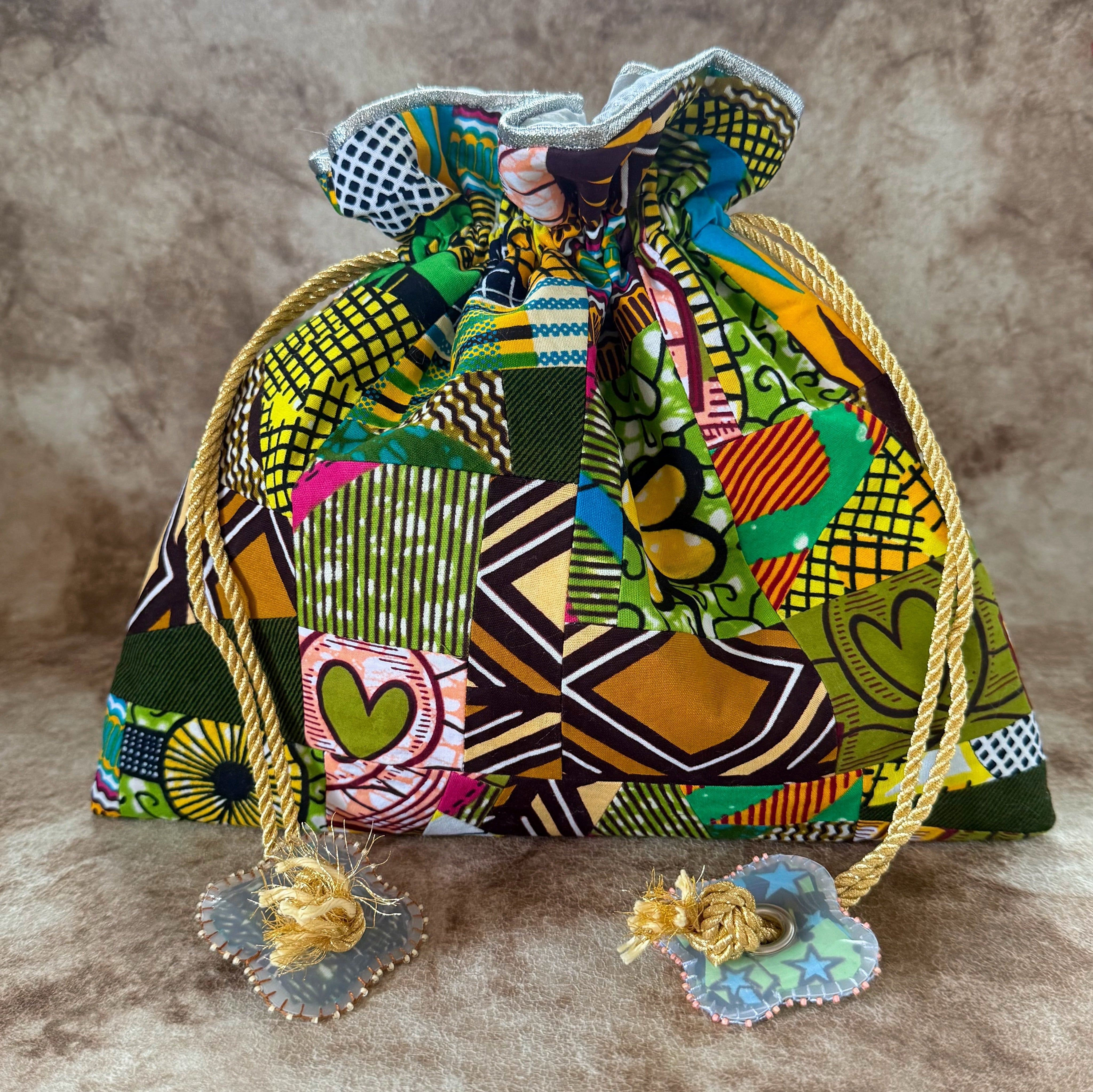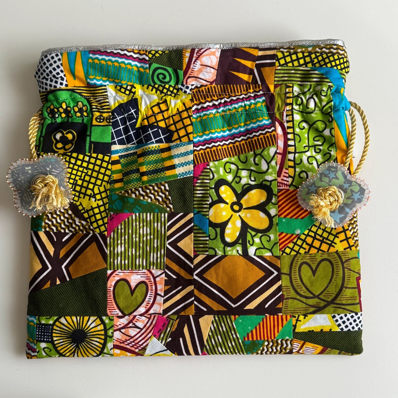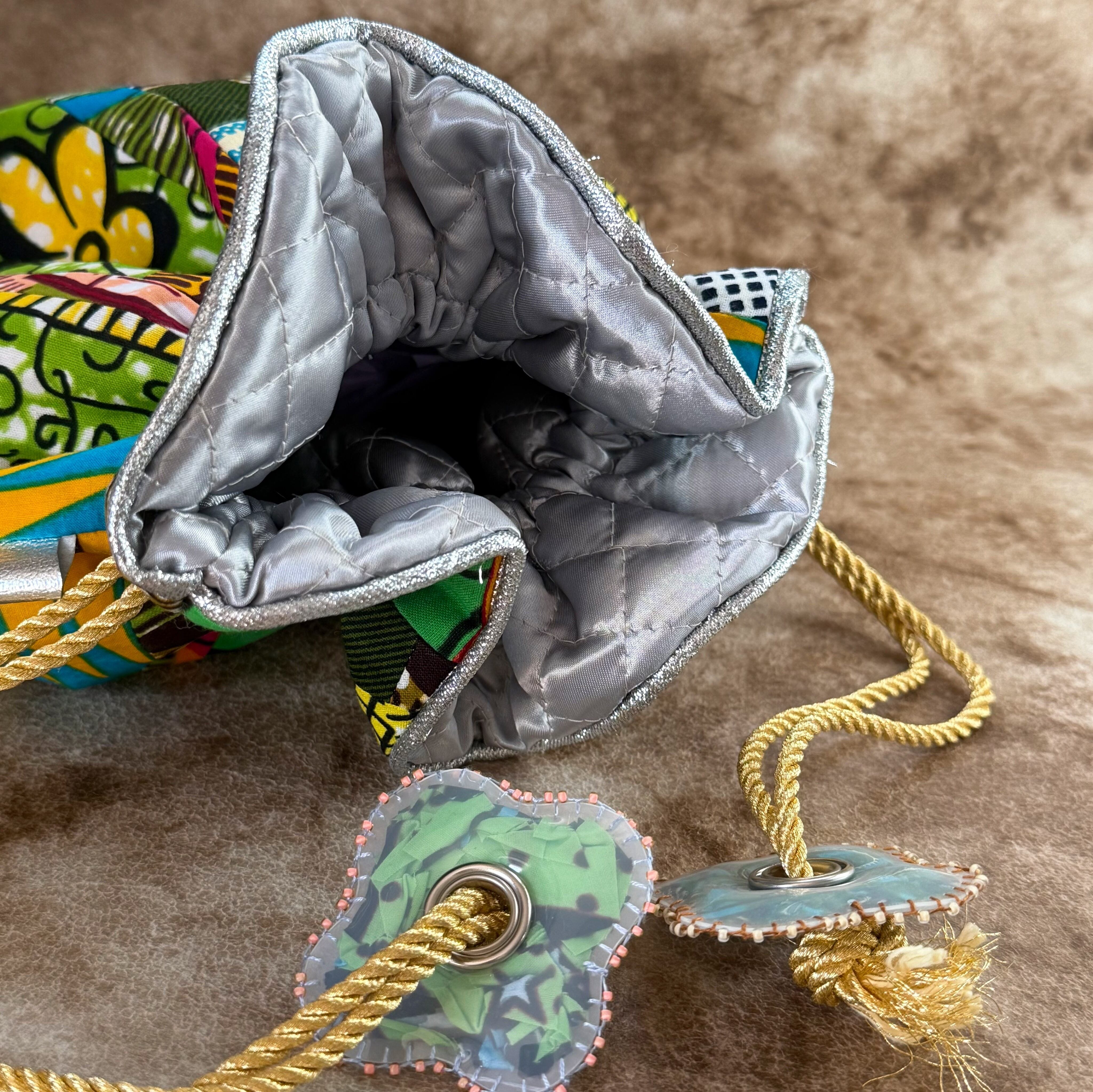 ハナニミズヲ パッチワーク巾着(内布-SLV)