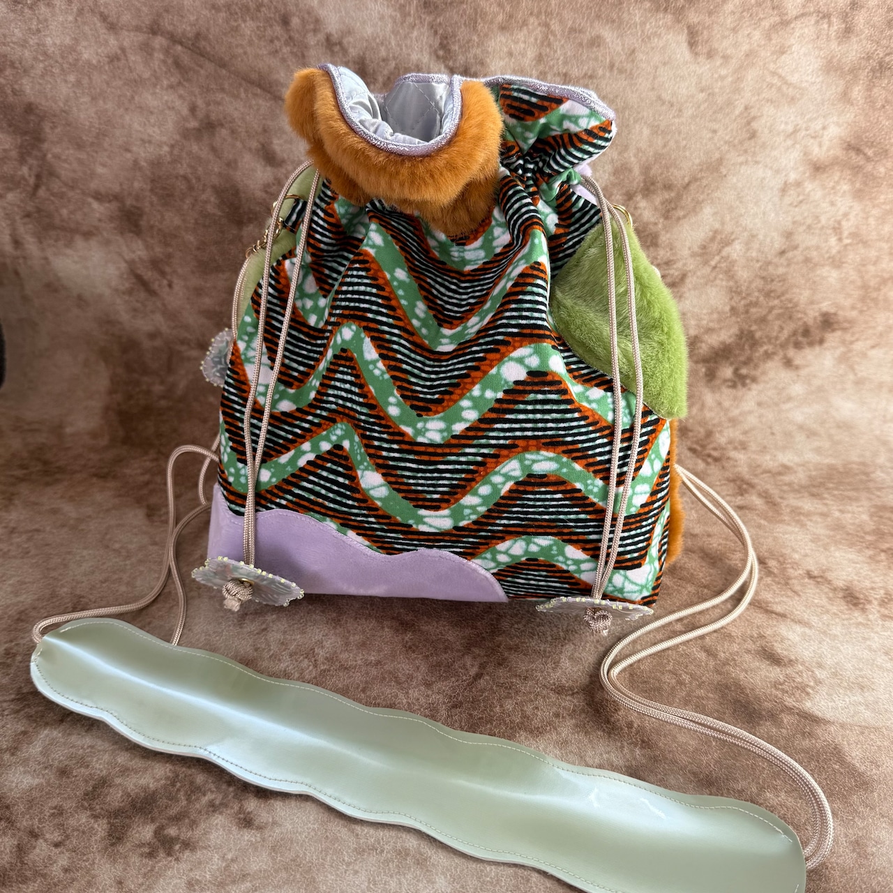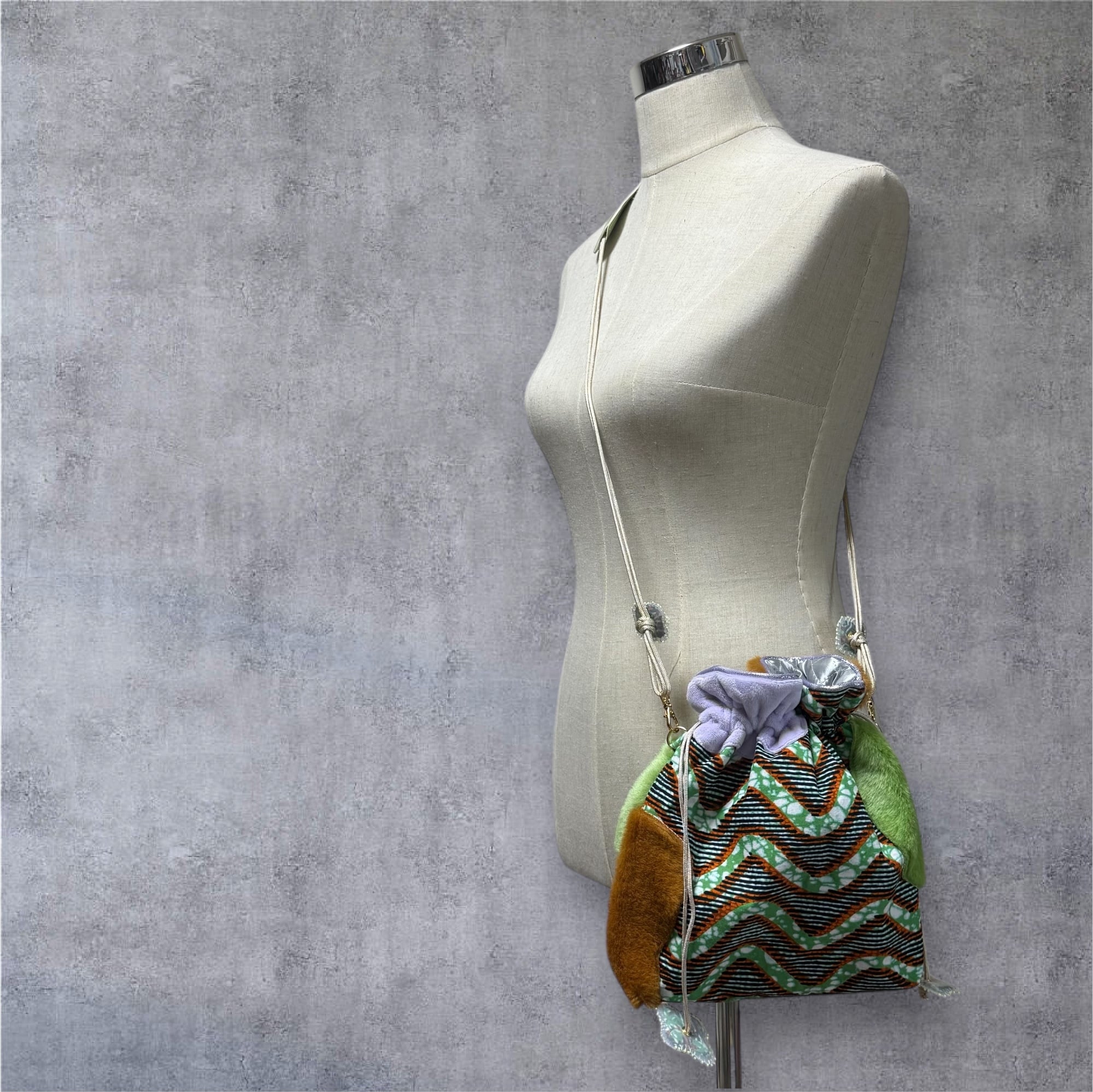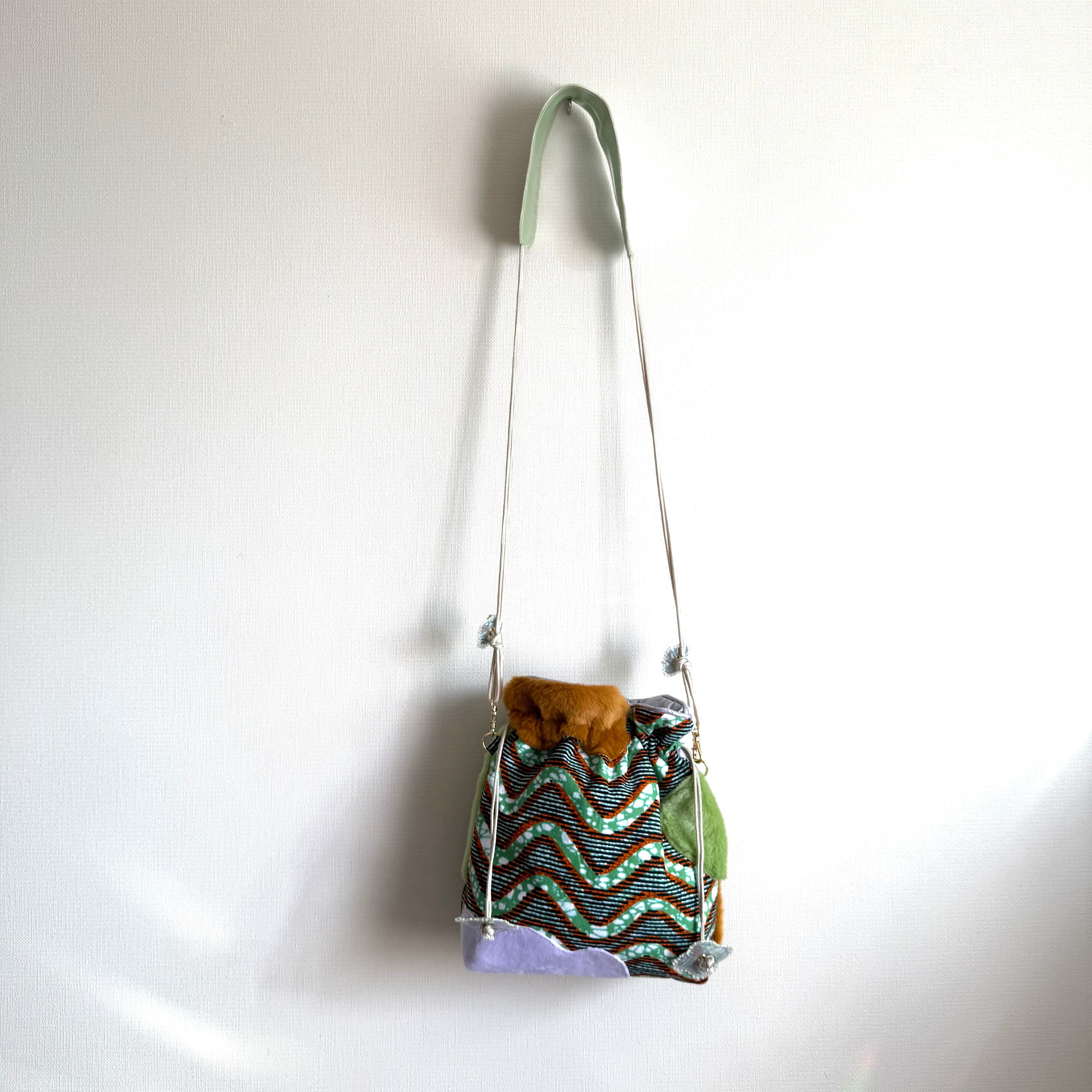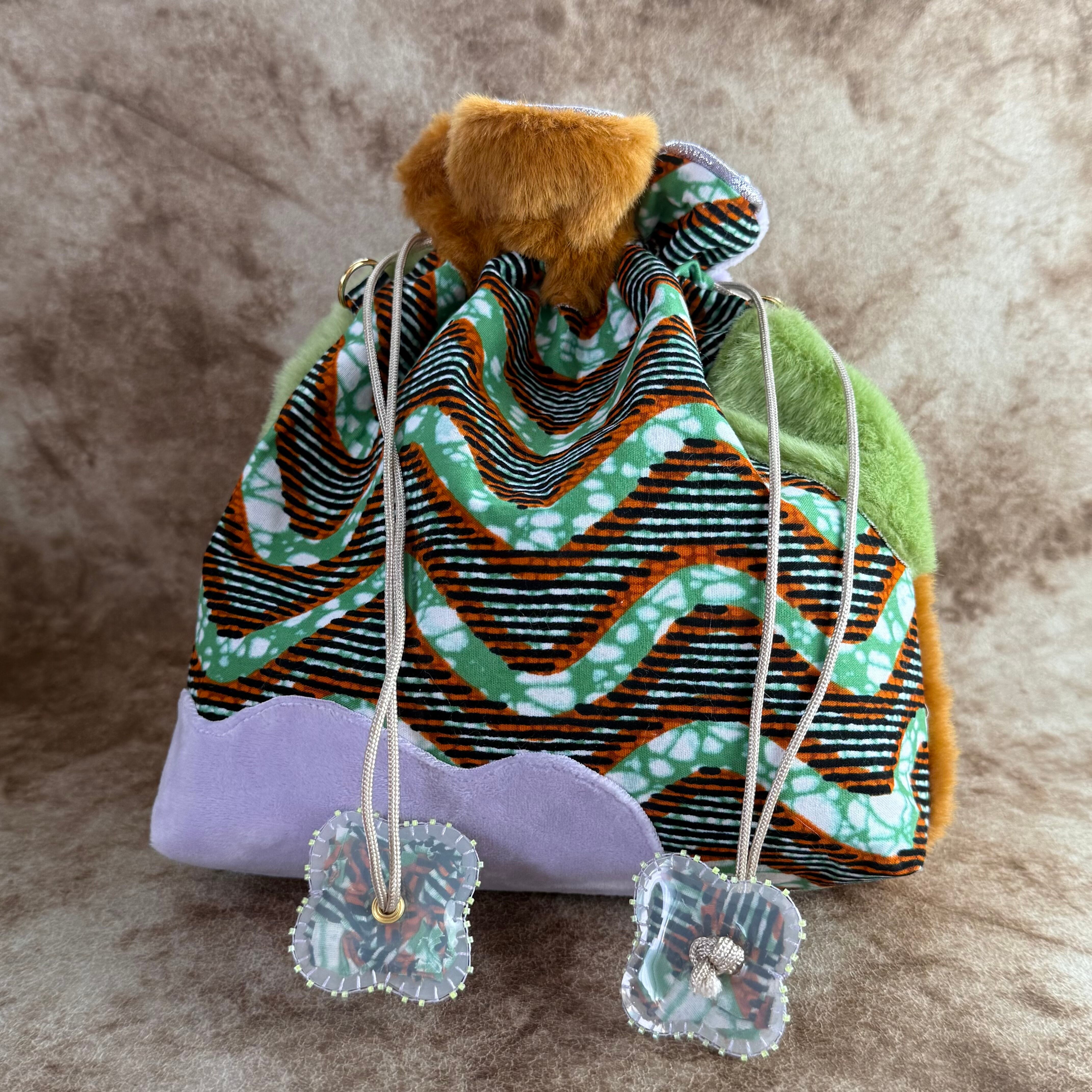 ハナニミズヲ ファーMIX巾着(GRN~~~)